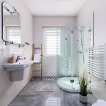 Az ingatlan fürdőszobája hajszárítóval és törölközőkkel felszerelt. Továbbá walk-in zuhanykabin és külön WC szintén elérhető.